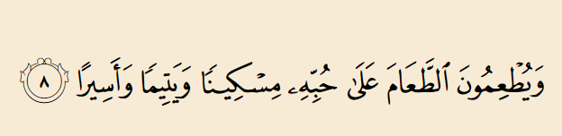 “Dan mereka memberikan makanan yang disukainya kepada orang miskin, anak yatim dan orang yang ditawan.” (Surah Al-Insan, Ayat 8)